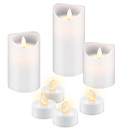 Akkukäyttöiset teelyhdyt, kruunukynttilät ja palikynttilät